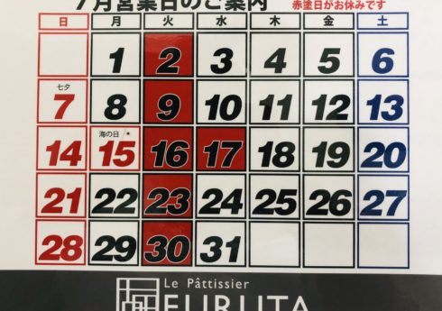 2019年7月10日 7月のお休み